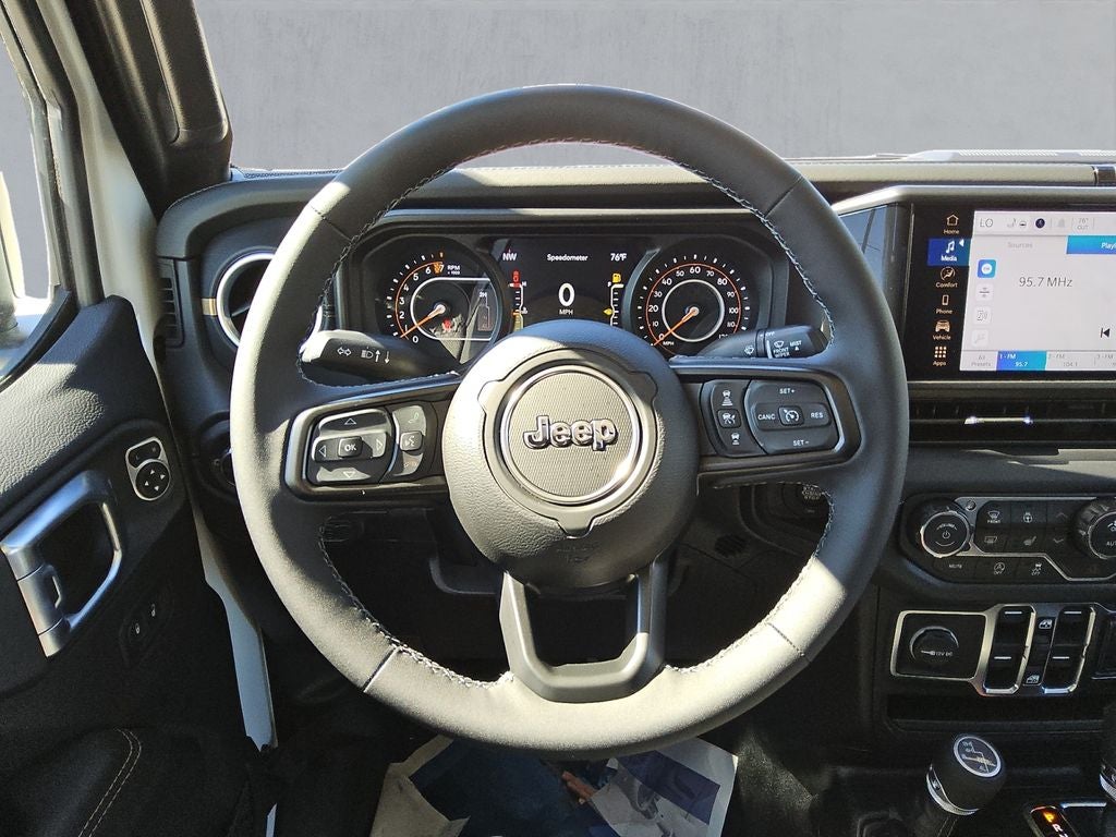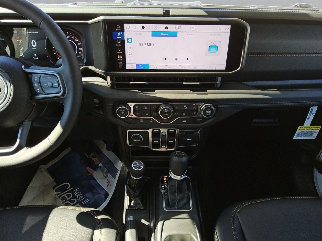 Step inside the Gladiator Sahara, and you'll be greeted by a meticulously crafted interior that seamlessly blends style and functionality. The premium McKinley-trimmed seats, heated front seats, and heated steering wheel offer unparalleled comfort, while the 12.3-inch touchscreen display with Uconnect 5 and Apple CarPlay/Android Auto integration keep you connected and entertained on the go.