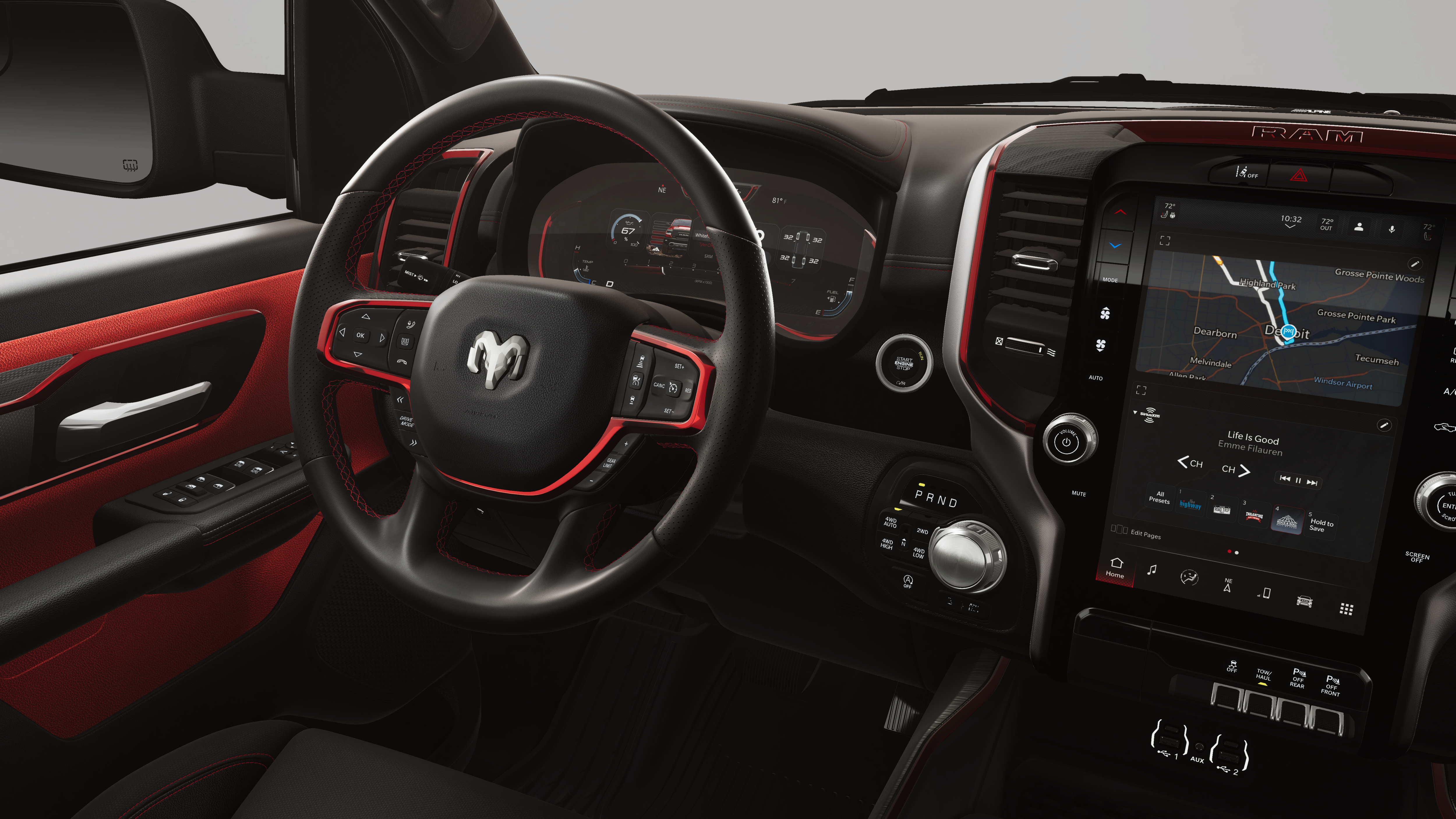 - 4-Wheel Disc Brakes w/4-Wheel ABS, Front Vented Discs, Brake Assist, Hill Descent Control, Hill Hold Control and Electric Parking Brake