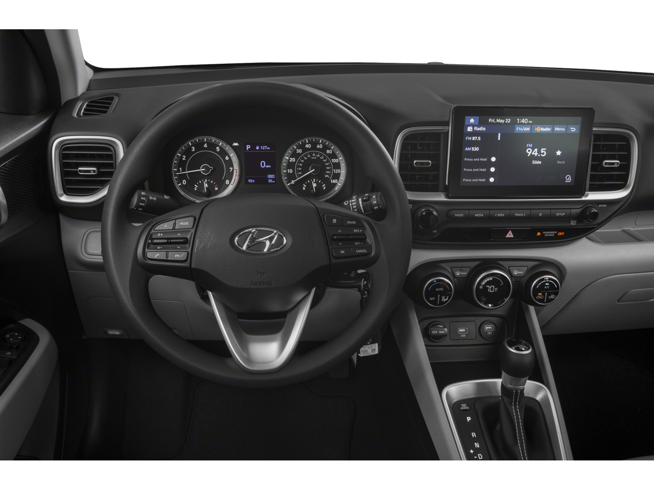 Inside, the Venue SEL offers a comfortable and well-appointed cabin, with features like Apple CarPlay and Android Auto, a Leather-Wrapped Steering Wheel, and Cloth Seat Trim. The Split Folding Rear Seat and Rear Seat Cup Holder add to the Venue's versatility, making it easy to accommodate passengers and cargo with ease.
