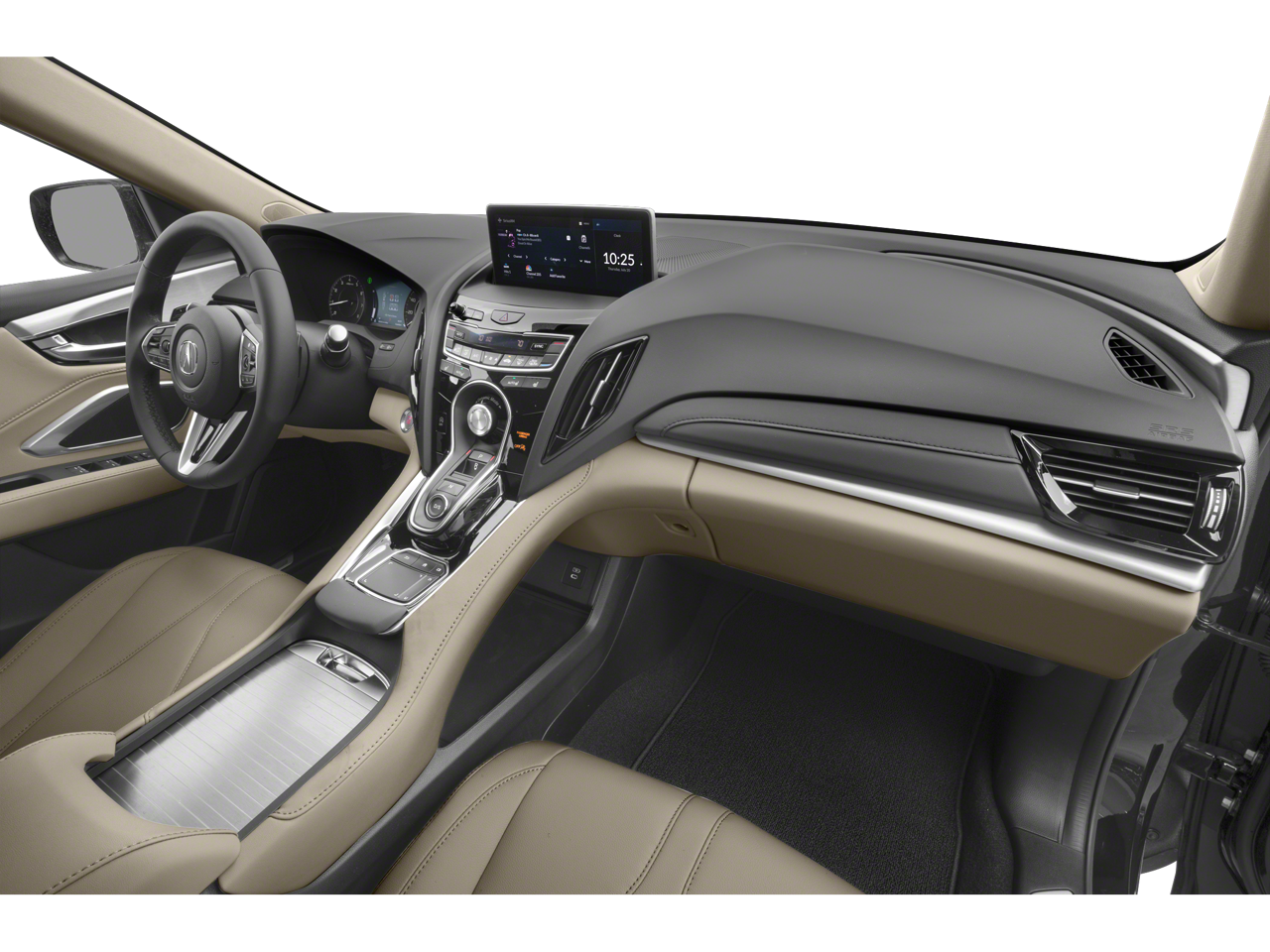 The RDX's sleek and sophisticated exterior is complemented by 19-inch Sparkle Silver Multi-Spoke alloy wheels, Auto High-beam Headlights, and a sporty rear spoiler. Inside, the cabin is appointed with premium amenities such as Dual-Zone Automatic Climate Control, Heated Front Seats, and a Panoramic Power Moonroof, creating a truly luxurious driving environment.